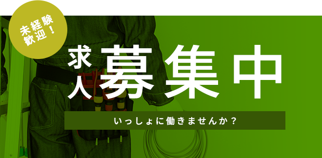 業務拡大につき求人募集中です。しっかりと経験が積める現場でいっしょに働きませんか?未経験も歓迎していますので、お気軽にお問い合わせください。